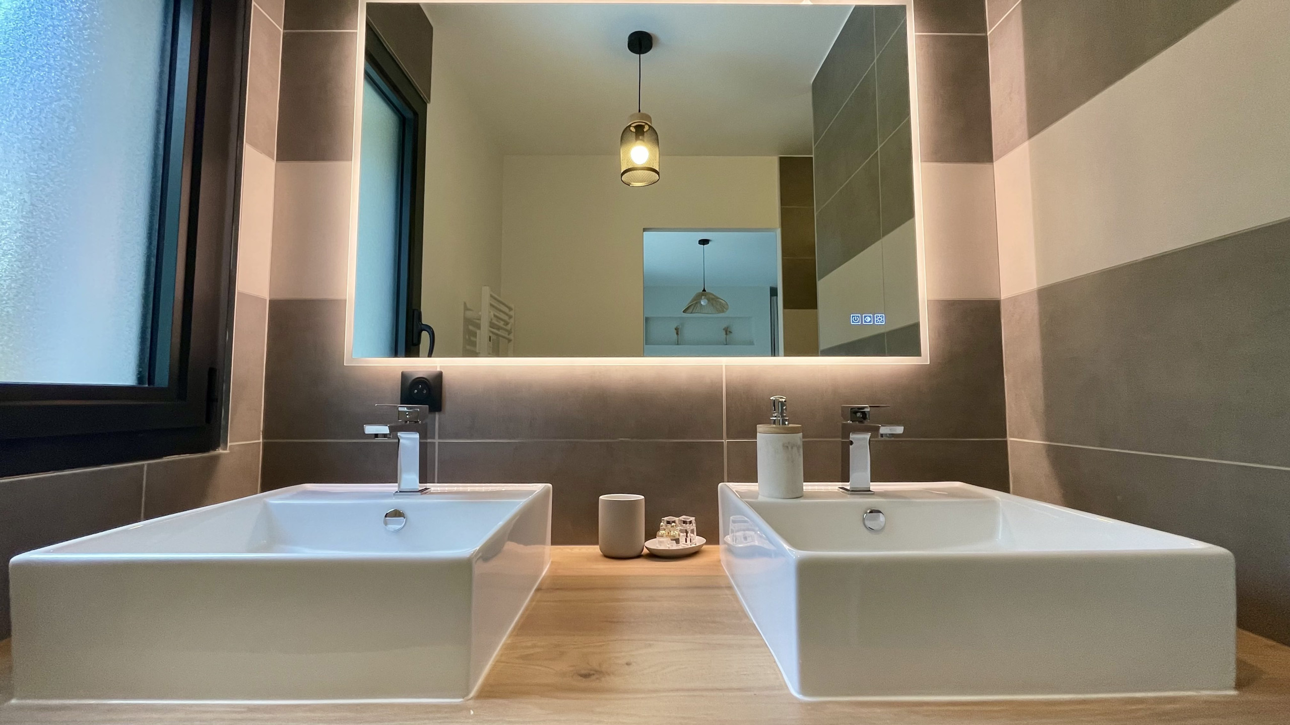 The outdoor space is designed for relaxation and conviviality: sun loungers, garden furniture, large family table and plancha for your summer meals.